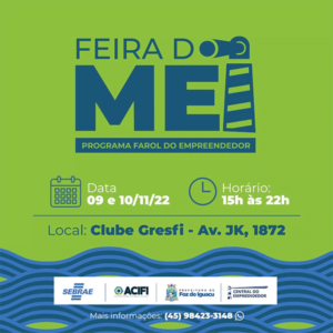 A Prefeitura de Foz do Iguaçu, através da Secretaria Municipal da Fazenda, em conjunto com o Sebrae e a Acifi (Associação Comercial e Empresarial de Foz do Iguaçu) vai realizar a 1ª Feira do MEI nos dias 9 e 10 de novembro no Clube Gresfi.