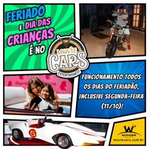 A nova atração de Foz, o Movie Cars Entertainment preparou uma programação especial de feriado e Dia das Crianças. O parque irá abrir todos os dias do feriadão, inclusive na segunda-feira (11), para os visitantes aproveitarem ao máximo esse passeio incrível sem perder nada!