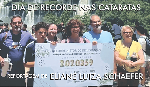 Dia de recorde nas Cataratas do Iguaçu!O Parque Nacional do Iguaçu superou a marca histórica de 2029, recebendo neste segunda-feira (29/12/2025), o visitante 2.020.359. O Almanaque Futuro Tv estava lá para conferir. Veja a reportagem de Eliane Luiza Schaefer.ALMANAQUE FUTURO TVELIANE LUIZA SCHAEFER By Redação 1 On 30 dez, 2025 Compartilhar FacebookTwitterGoogle+WhatsAppPinterestO email Compartilhar FacebookTwitterGoogle+WhatsAppPinterestO email