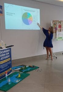 A professora Sylvania Kazmierski Moreira Lima, do CMEI Elaine Bernardes Ribeiro, em Foz do Iguaçu, Paraná, apresentou o projeto “Agua Fonte da Vida” na 15ª edição do prêmio professor Paulo Freire-2023. O projeto, que foi desenvolvido em conjunto com os alunos, ensina sobre a importância da água, desde o desperdício até o reaproveitamento.