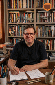 Rogério Romano Bonato assina a coluna No Bico do Corvo há mais de duas décadas, atravessando jornais e muitos carnavais. Agora, com o suporte da Inteligência Artificial, o Corvo ganha forma, voz e movimentos próprios. O personagem passa a ocupar as redes sociais do Almanaque Futuro com o mesmo olhar ácido de sempre. Assista à performance de estreia do passarinho!”