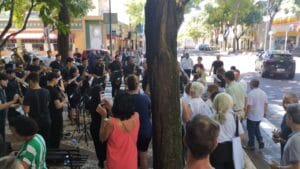 Neste sábado, 1º de fevereiro, a Avenida Brasil, um dos principais pontos da cidade de Foz do Iguaçu, foi palco de uma apresentação histórica e emocionante da Banda Filarmônica. A ação cultural, promovida pela Prefeitura de Foz do Iguaçu sob a gestão do prefeito General Silva e Luna, foi marcada por um repertório de músicas tradicionais, marchinhas e outras composições que encantaram as pessoas que transitaram na principal rua comercial da cidade. O Prefeito comentou que “é preciso valorizar a história da cidade, e a ação na Avenida Brasil é uma forma de mostrar para os moradores e para os turistas que nós amamos Foz do Iguaçu”, ressaltou.