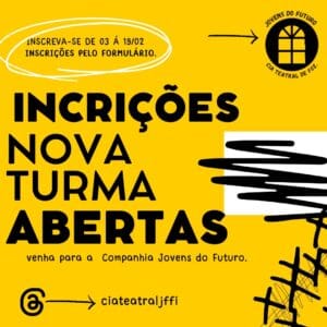 Para mais informações, entre em contato pelo Instagram @ciateatraljffi ou pelo email: cjovensdofuturo@gmail.com.