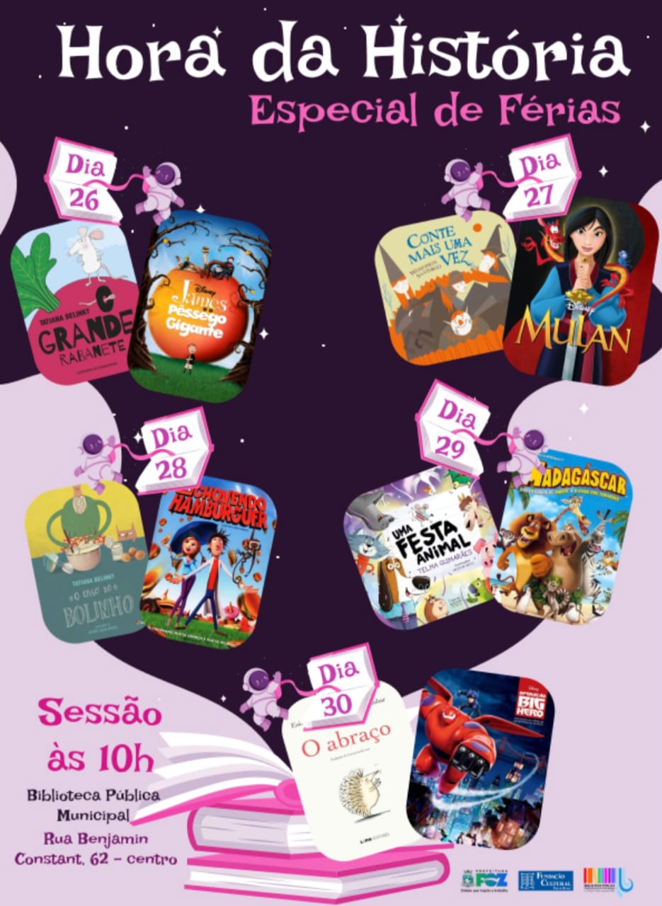 Entre os dias 26 e 30 de janeiro, a Biblioteca Pública Municipal de Foz do Iguaçu promove o projeto Hora da História – Especial de Férias, uma programação gratuita voltada ao público infantil que une contação de histórias e exibição de filmes. A iniciativa acontece durante o período de recesso escolar e tem como foco transformar as férias em uma experiência cultural, educativa e divertida para crianças e famílias da cidade.
