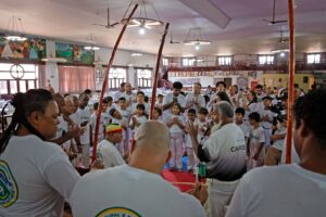 A tarde de sábado reuniu alunos e familiares. Entre eles, Marcos Antônio Rodrigues de Souza, contra mestre Espoleta, de Engenheiro Beltrão, que participou acompanhado da esposa e da filha de 8 meses. A família acompanhou as aulas e rodas ao longo do dia. “Essa união faz com que a capoeira cresça ainda mais e incentive a participação de crianças”. Segundo ele, a prática teve impacto direto em sua vida. “Me trouxe minha família, e libertação”.