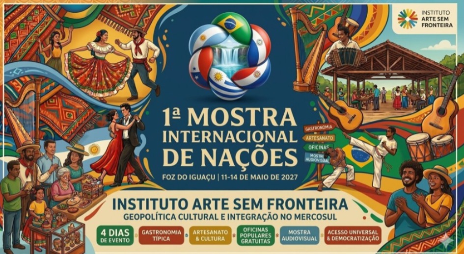 O Instituto Arte Sem Fronteira (IASF) anuncia oficialmente a 1ª Mostra Internacional de Nações 2027, iniciativa cultural de grande envergadura que se propõe a celebrar a pluralidade étnica, artística e gastronômica da cidade mais cosmopolita do Paraná. O projeto demonstra adesão popular expressiva e caminha para se tornar uma política pública de cultura permanente em Foz do Iguaçu.