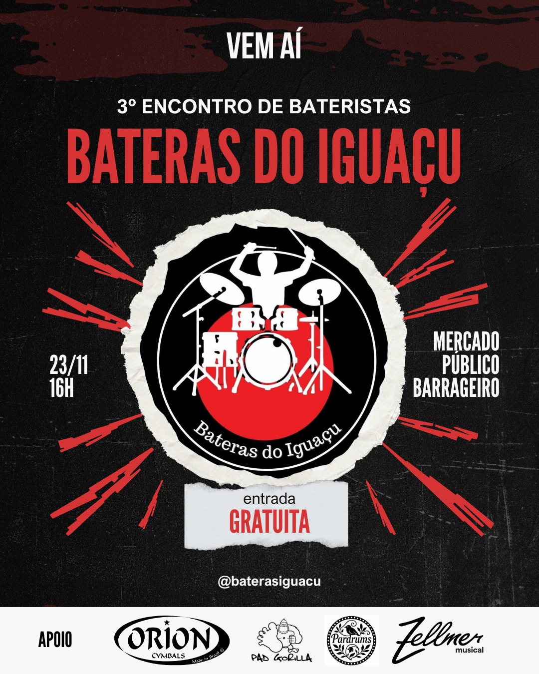 O 3º Bateras do Iguaçu é apoiado pela Orion Cymbals, Pad Gorilla, Zellmer Musical e ParDrums.