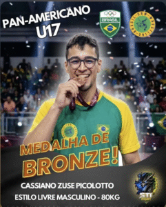 Cassiano Picolotto (Bronze): Com uma performance de superação na categoria até 80kg, Cassiano lutou com o coração e garantiu o bronze, confirmando que o wrestling de Santa Terezinha de Itaipu é hoje um dos mais fortes do continente.