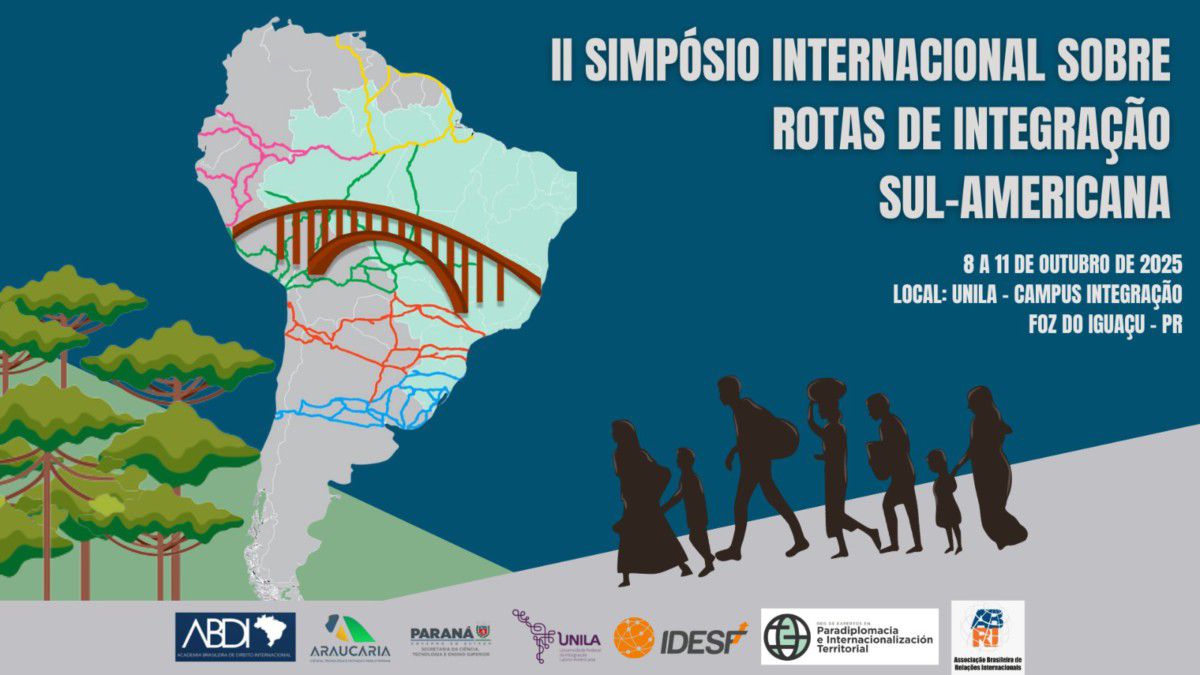 De 8 a 11 de outubro, o Campus Integração, da UNILA, será palco do 2º Simpósio Internacional sobre Rotas de Integração Sul-Americana. O evento reunirá pesquisadores, estudantes, gestores públicos, além de representantes do setor privado e da sociedade civil, para discutir os desafios e as oportunidades das rotas de integração que conectam a América do Sul.