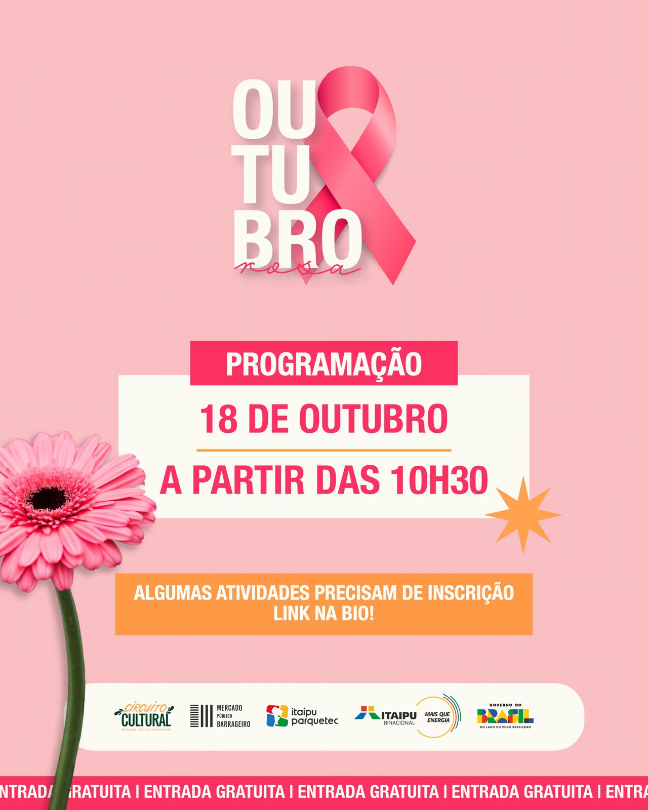Neste sábado (18), o Mercado Público Barrageiro promove uma programação especial em alusão ao Outubro Rosa, com atividades voltadas ao bem-estar, saúde, cultura e música ao vivo.