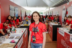 A professora Renata Bazanela Lins de Oliveira, do Colégio Estadual José Alfredo de Almeida, de Mariluz (PR), ressaltou a importância da feira como um espaço transformador para professores e estudantes. “É a minha primeira vez aqui na FIciências, ainda mais representando o Clube de Ciências “Colégio Estadual José Alfredo de Almeida” (CEJAA), e estou achando tudo incrível, os alunos estão amando participar. É uma oportunidade de networking, de aprendizado e de troca de experiências”, mencionou. Para a professora, o maior valor da Feira está na possibilidade de compartilhar conhecimento e vivenciar a colaboração entre diferentes áreas e instituições de ensino. “A cada conversa, a cada nova troca, percebo o quanto isso amplia o nosso olhar e estimula novas ideias de pesquisa. Vou voltar para minha região uma professora completamente diferente da que chegou aqui”, finalizou sorrindo.