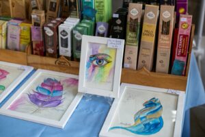 Laura Ruotolo – Artista visual que expõe suas obras em tinta a óleo e aquarela, além de oferecer incensos artesanais, unindo cor, aroma e espiritualidade em um mesmo gesto criativo.