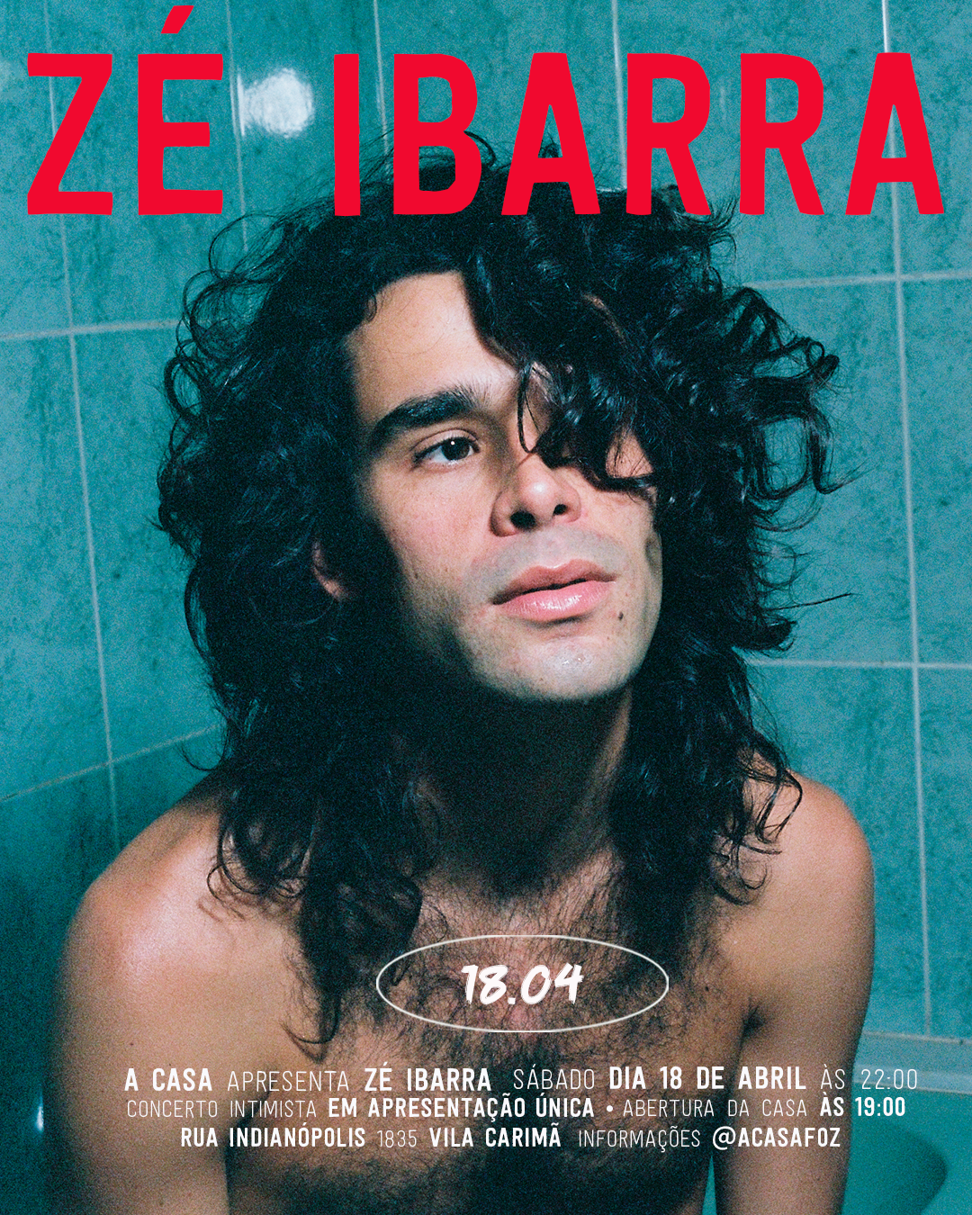 Zé Ibarra, neste 18 de abril, sábado; em A Casa Foz, acesso às 19h. Abertura com Gabriel Sampaio e Marina Araldi, no projeto Memórias de Um Rio, com canções autorais. Início previsto: 22h.