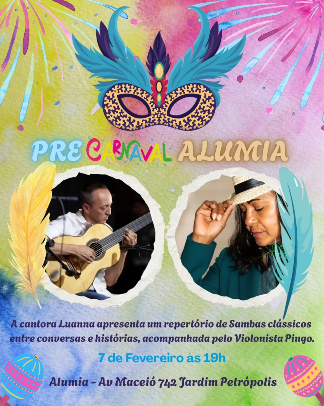 O espaço cultural Alumia entra no clima do Carnaval e promove, no dia 7 de fevereiro, a partir das 19h, uma programação especial de pré-Carnaval voltada para toda a família. Com entrada gratuita, o evento une música, história e gastronomia, convidando o público da Tríplice Fronteira para uma noite de celebração cultural e convivência.