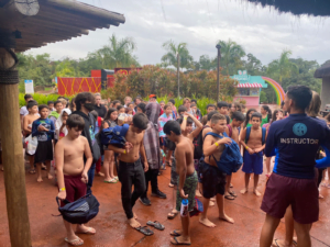 Cerca de 100 alunos dos quintos anos da Escola Municipal Érico Veríssimo participaram, nesta quinta-feira (22), da 14ª edição da Maior Aula de Natação do Mundo – The World’s Largest Swimming Lesson (WLSL), realizada no Blur Park em Foz do Iguaçu.