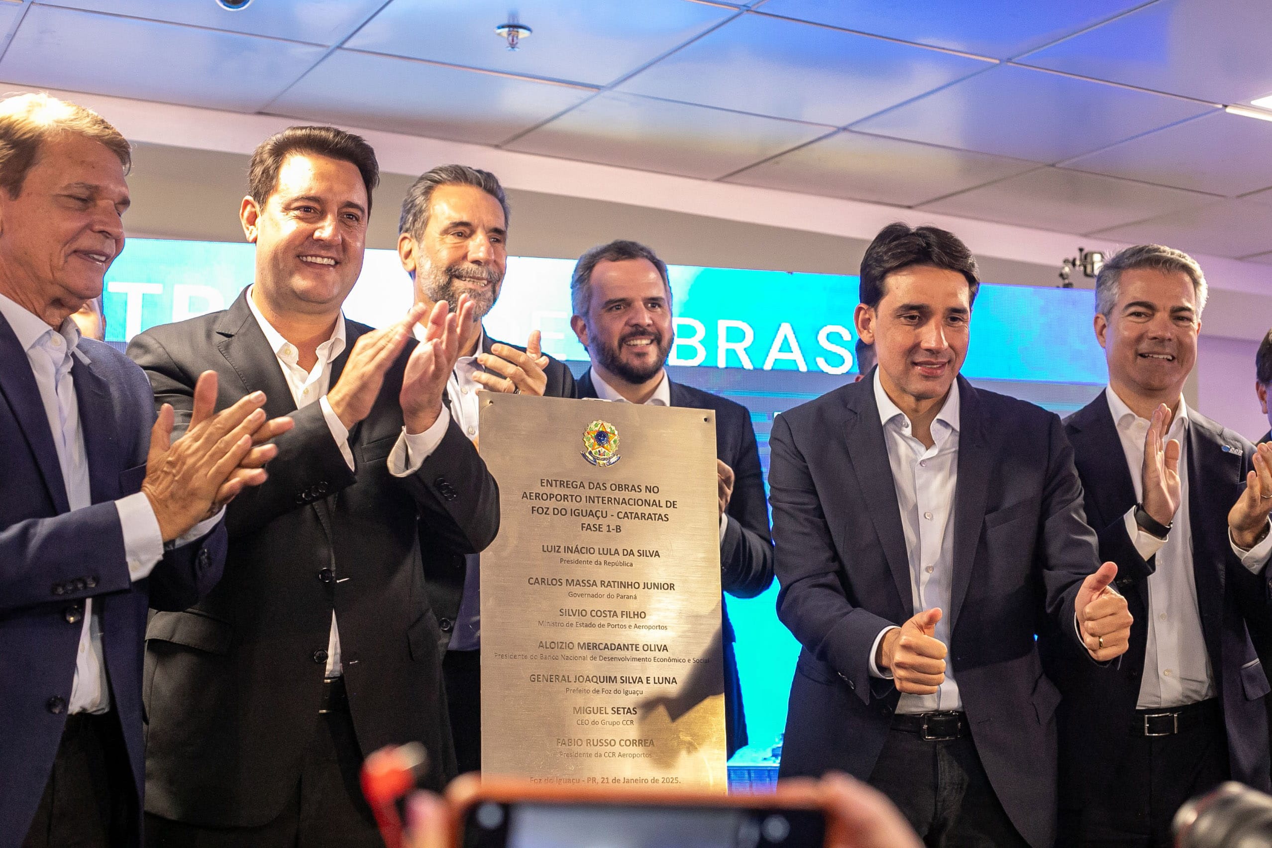 O governador Carlos Massa Ratinho Junior participou nesta terça-feira (21) da entrega das obras de modernização e ampliação do Aeroporto Internacional de Foz do Iguaçu, no Oeste do Estado. A CCR Aeroportos, empresa que administra o terminal desde 2022, investiu R$ 396 milhões em melhorias no terminal nas áreas interna e externa, ampliando ainda mais o potencial turístico da região.