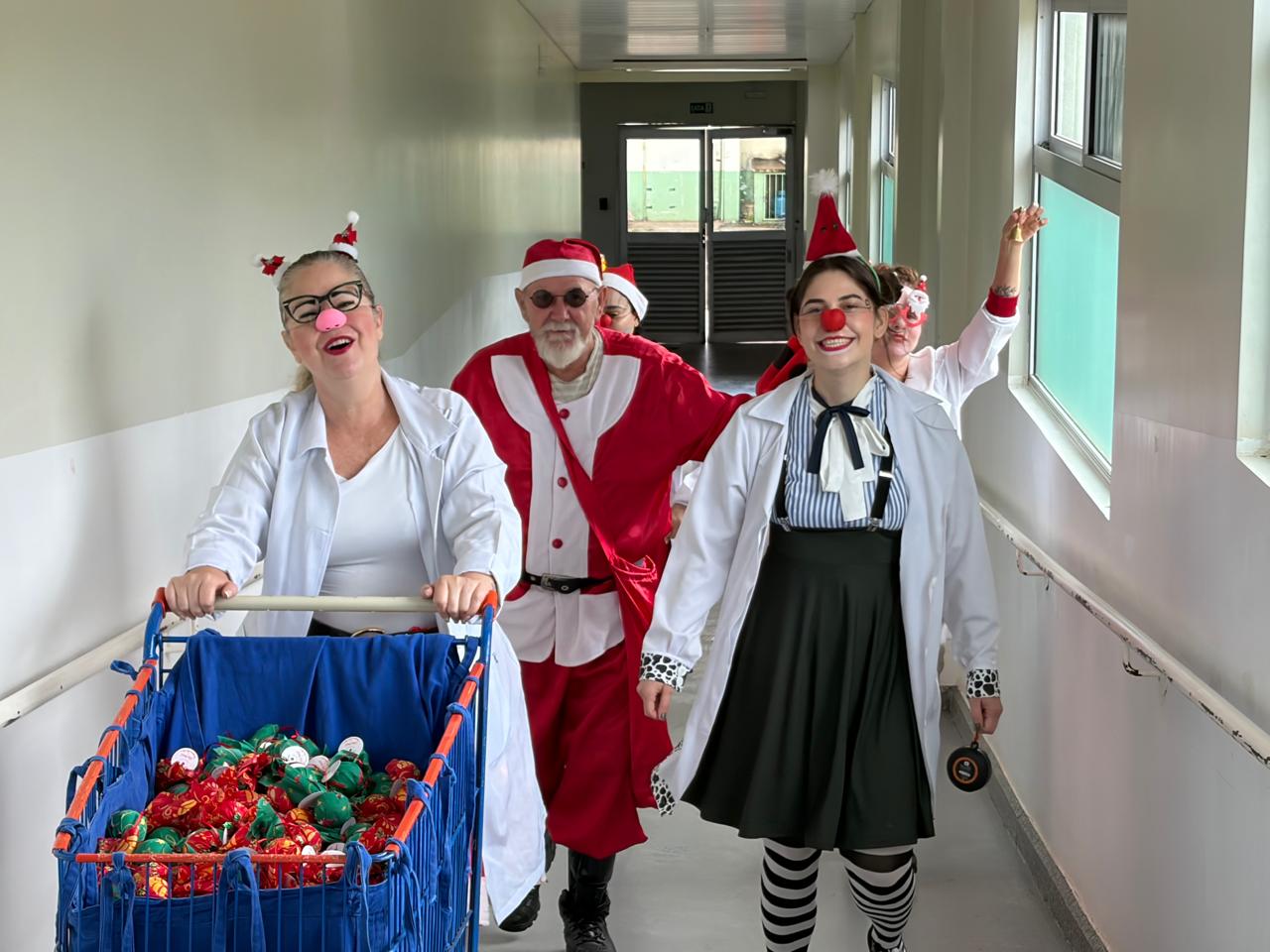Cia do Riso realiza visita de Natal e distribui 700 lembrancinhas em hospitais de Foz do Iguaçu