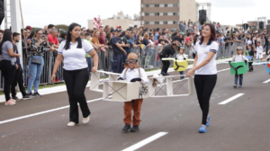 Crianças celebram a diversidade cultural e homenageiam pioneiros durante o desfile de aniversário do município