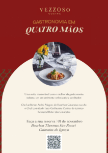 O Jantar a Quatro Mãos marca uma das grandes novidades do Vezzoso Cucina. O chef anfitrião do Bourbon Cataratas, André Magon, recebe o chef Luiz Guilherme Cyrino, do icônico Belmond Hotel das Cataratas, para uma noite dedicada à cozinha italiana moderna, inspirada nas osterie contemporâneas.
