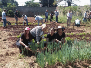 Horta comunitária em Londrina contou com o envolvimento da comunidade local e reuniu participantes de diversas idades. Foto: Paulo Bassani / Itaipu Parquetec
