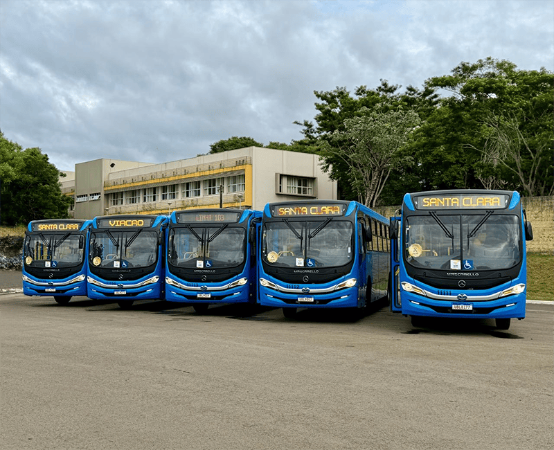 A partir desta terça-feira (24), os moradores e turistas que utilizam o transporte público de Foz do Iguaçu passam a contar com um reforço significativo na qualidade das viagens. Cinco novos ônibus zero quilômetro, equipados com ar-condicionado, câmeras de segurança, Wi-Fi gratuito e entradas USB para recarga de celulares, foram integrados à frota municipal. Os veículos, que têm capacidade para 80 passageiros, foram entregues pela Viação Santa Clara (VISAC) ao Foztrans (Instituto de Trânsito de Foz do Iguaçu) em uma cerimônia realizada na última segunda-feira (23).