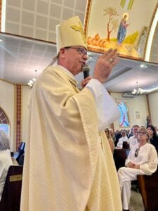 O bispo Dom Sergio de Deus presidiu a missa das 8h deste Domingo de Páscoa e, também, da celebração dos Santos Óleos da diocese, na quarta-feira (27), com todos os párocos, padres e diáconos de Foz do Iguaçu.