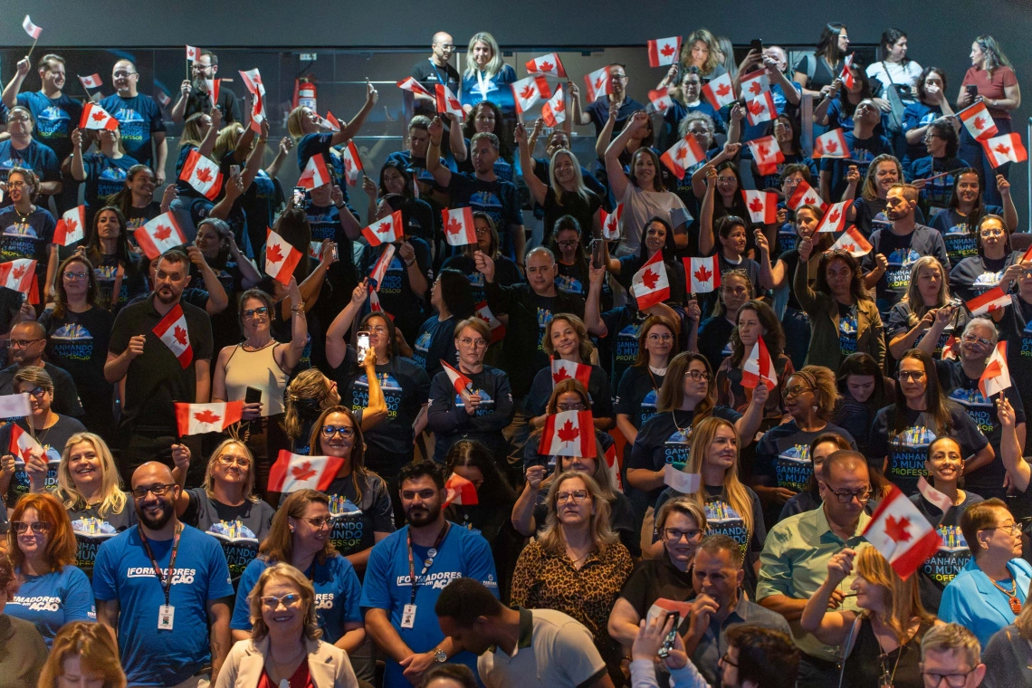 GANHANDO O MUNDO PROFESSOR – Entre os maiores programas de intercâmbio docente do Brasil, o Ganhando o Mundo Professor já está em sua segunda edição, que conta com R$ 9,5 milhões de investimento. Em 2025 o programa selecionou 250 docentes que agora passarão três semanas no Canadá, no Greystone College em Toronto, para uma imersão pedagógica. O primeiro grupo embarca nesta sexta-feira (6), com 132 professores. Os 119 restantes viajam no sábado (7).