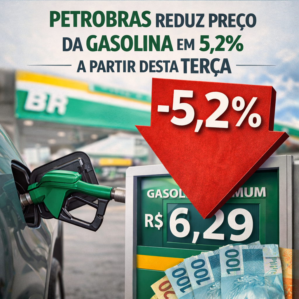 A Petrobras anunciou nesta segunda-feira (26) que vai reduzir em 5,2% o preço da gasolina A vendida às distribuidoras. O novo preço passa a valer a partir desta terça-feira (27).