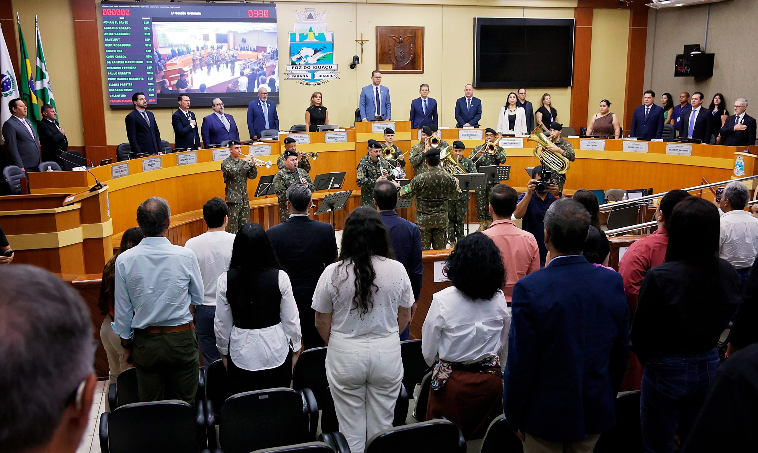O prefeito de Foz do Iguaçu, General Silva e Luna, participou na terça-feira (3) da sessão solene que marcou o início do Ano Legislativo na Câmara Municipal. Durante o encontro, o chefe do Executivo apresentou as linhas gerais da gestão para 2026, com destaque para o fortalecimento do diálogo institucional, a organização administrativa e o compromisso com o controle das finanças públicas.