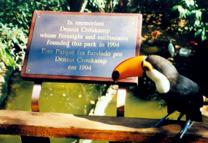 “O terreno que adquirimos para construir o Parque das Aves possuía uma estrada de pedras, que ia da Rodovia das Cataratas até o rio Iguaçu. Ali próximo ao rio, existia uma pedreira, das quais foram retiradas as pedras que construíram o aeroporto de Foz. E nós usamos essa estrada para colocar os maiores viveiros do Parque das Aves, pois já era uma área sem árvores”, comenta a Dra. Anna Croukamp, fundadora do Parque das Aves.