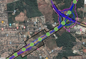 - Na ilustração do traçado técnico (abaixo), os moradores teriam que fazer o contorno pelo viaduto da BR 469 para voltar até a Avenida Morenitas (o mesmo no sentido inverso), usando o viaduto; no desenho, não há um retorno mais simples, sobre essa possibilidade.