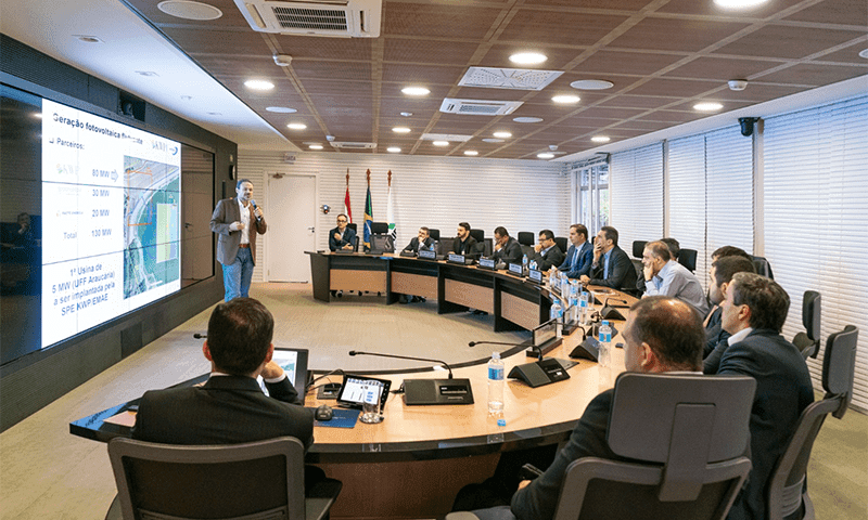 Consórcio apresenta modelo de usina de energia solar flutuante para diretoria da Itaipu