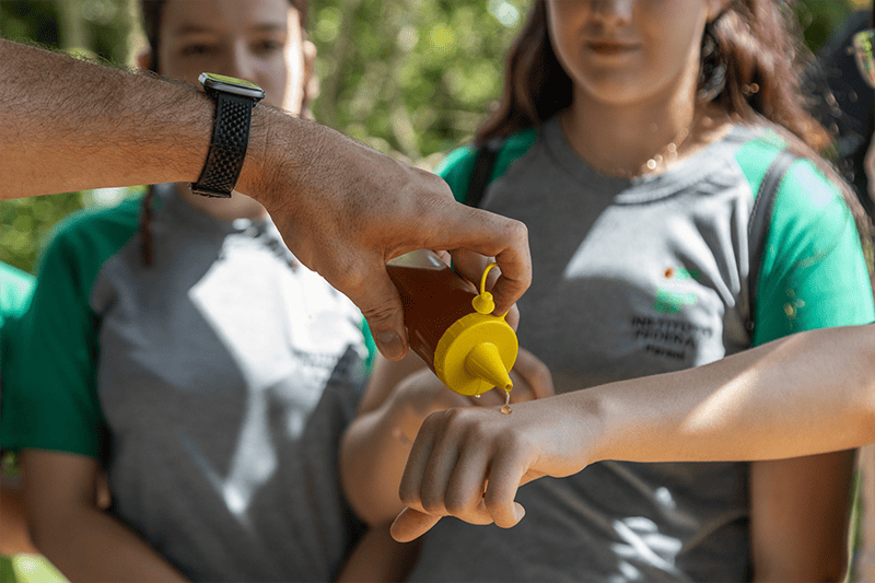 Morador de Planalto, no sudoeste do Paraná, Arnaldo Roll passou a se dedicar à atividade depois de aposentado, mantendo hoje cerca de dez espécies e dezenas de caixas próximas à residência. Segundo Arnaldo, a visita ao espaço contribuiu para ampliar conhecimentos e evitar erros no manejo das abelhas nativas. “As abelhas nativas são o ouro do Brasil, e o mel delas também. Aqui a gente sempre aprende mais um pouco, busca explicação, conhecimento, para errar menos e preservar melhor”, explicou.