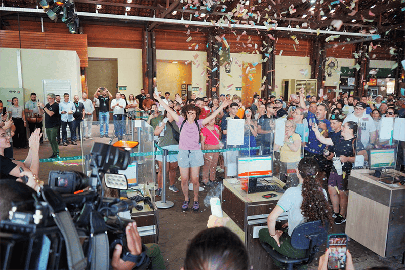 A entrada de Evelyne Crivelari Seabra, de Curitiba (PR), foi comemorada com alegria pela equipe do parque, que programou atividades especiais e música ao vivo para registrar a quebra do recorde. “Já tínhamos programado vir pra ver as Cataratas com volume cheio e trazer a família pra conhecer, e foi muito impactante ter essa surpresa. Visitar as Cataratas do Iguaçu é uma experiência que todo brasileiro tem que ter. É indescritível estar aqui, ver tudo isso de perto, porque pelas telas não temos ideia da grandiosidade que é isso aqui. É um exemplo do que o Brasil tem para oferecer para todo mundo”, conta a visitante.