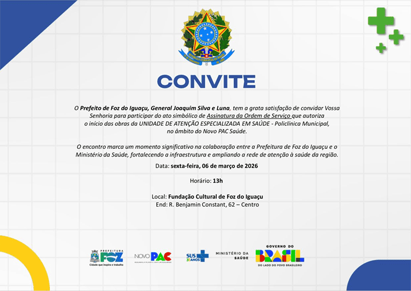 O evento marca um importante avanço para a saúde pública e simboliza a parceria entre a Prefeitura de Foz do Iguaçu e o Ministério da Saúde, do Governo Federal, no fortalecimento da infraestrutura e na ampliação da rede de atenção à saúde.